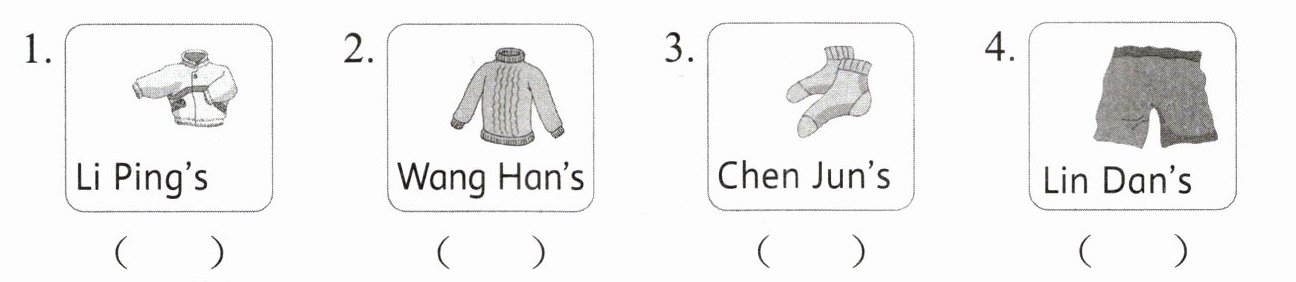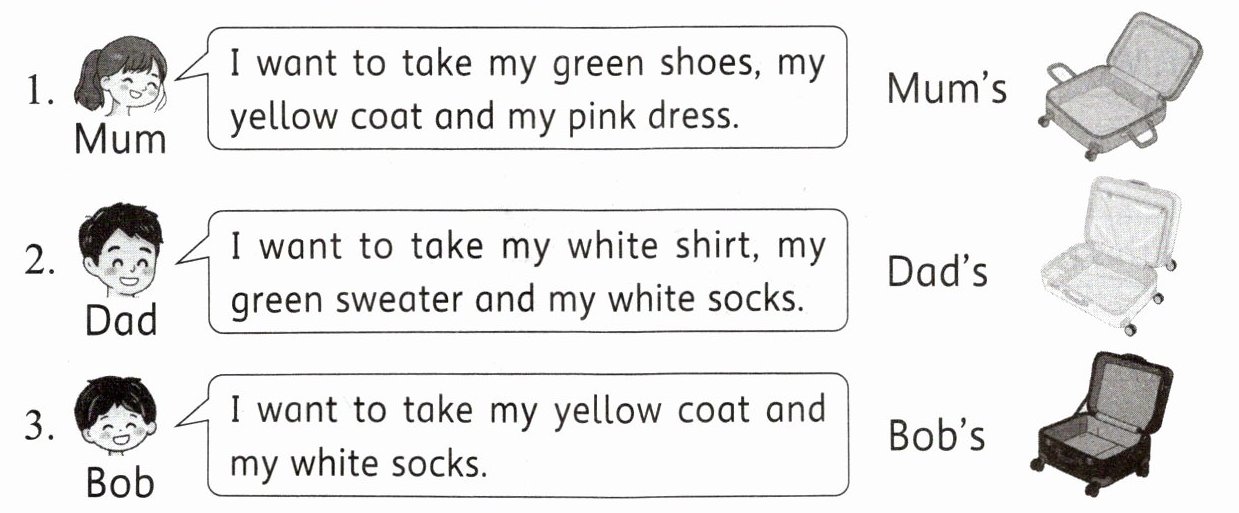 Ⅳ. 将 Bob 一家想要带的衣服的序号填在他们各自的行李箱中。