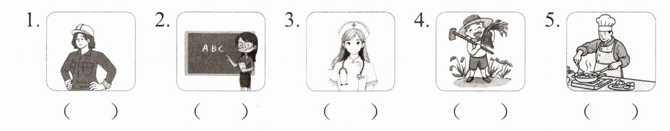 )5. A. He can cook. B. They can draw. C. She can sweep the floor.