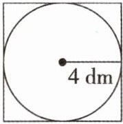 5. 在正方形里画一个最大的圆,圆的半径为4 dm,正方形的面积是多少?