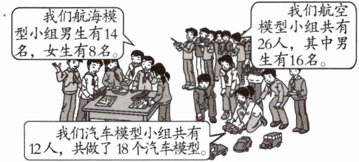 (2)汽车模型小组做的模型总数与人数的比是多少? 航空模型小组男、女人数的比是多少?