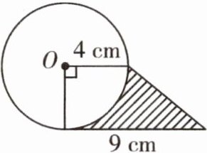$(4 + 9)×4÷2 - 3.14×4^{2}×\frac{1}{4}=13.44(cm^{2})$