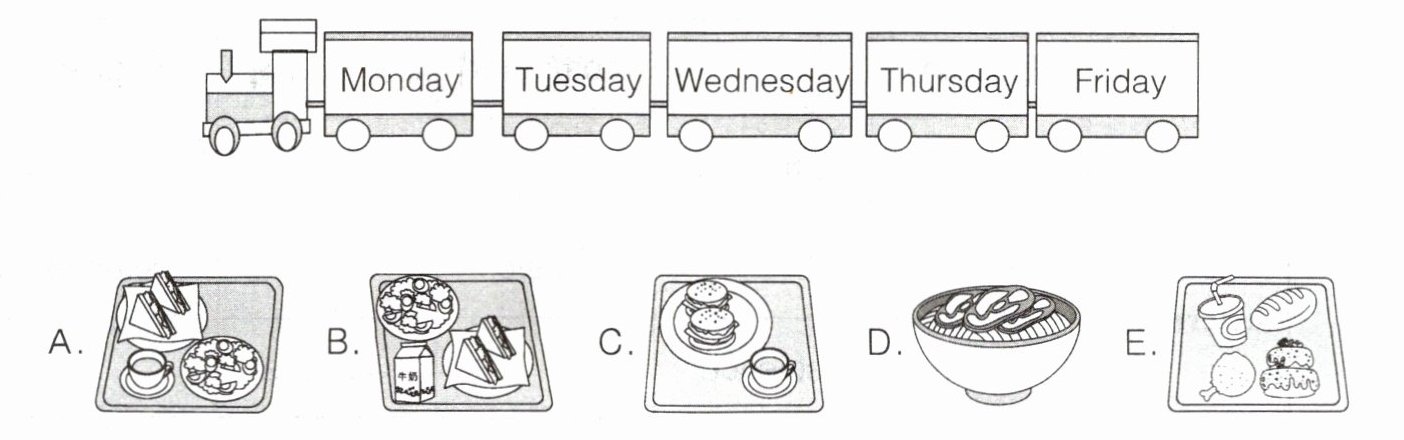 Monday - C Tuesday - A Wednesday - D Thursday - B Friday - E