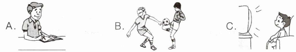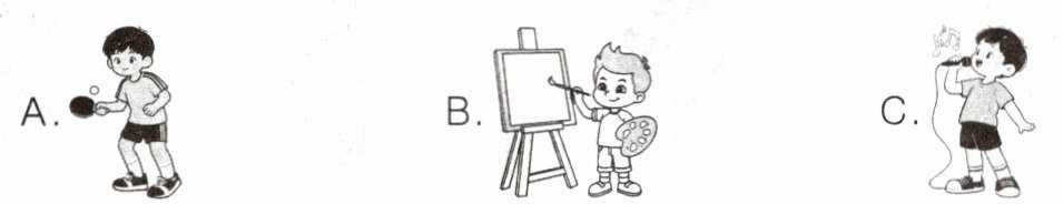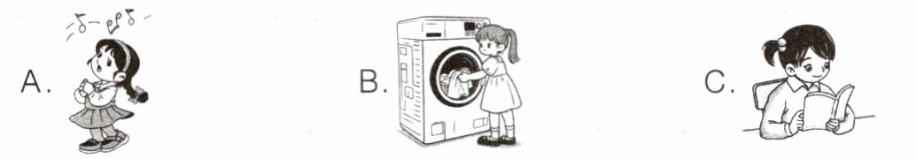 Ⅲ. Wu Binbin 正在采访自己的新同学。想知道他们平时都喜欢上什么课,周末通常做什么吗?听录音,选择与你所听内容相符的图片。