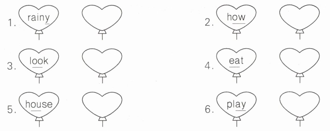 Ⅵ. 请根据下列单词画线部分的发音,从第五题的电子邮件中找出含有相同发音的单词,写在气球里。任意一个即可,不可重复。