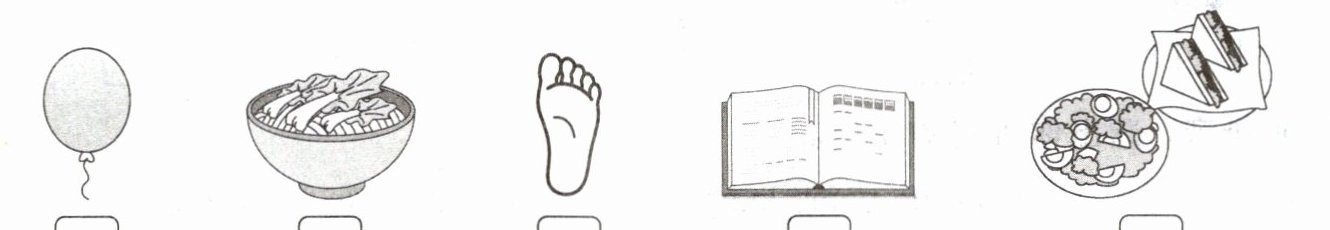 1.Look 2.cook 3.zoo 4.balloons 5.noodles