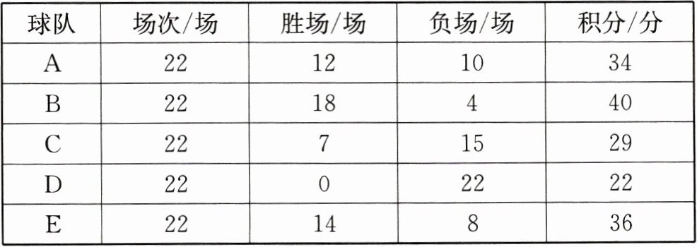 (1)由D队可以看出,负一场积$1$分,由此可计算出胜一场积$2$分。