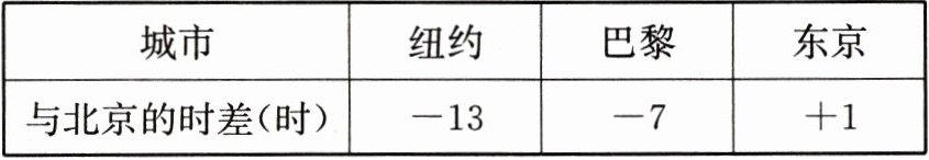 13. 下表列出了国外几个城市与北京的时差(正数表示同一时刻比北京时间早).