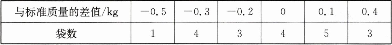 |与标准质量的差值$/kg$|$-0.5$|$-0.3$|$-0.2$| $0$ | $0.1$ | $0.4$ |