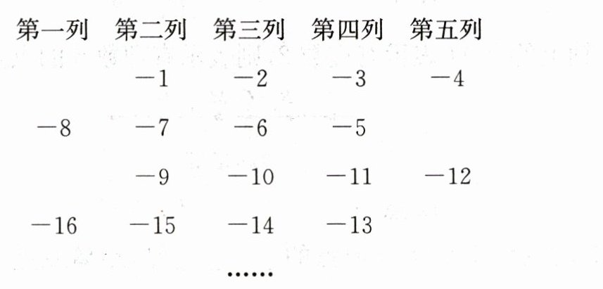 10. 在小学我们学习了偶数$ 0 $,$ 2 $,$ 4 $,$ 6 $,$ 8 $,···以及奇数$ 1 $,$ 3 $,$ 5 $,$ 7 $,···,现在我们学习了负数,也知道了负偶数与负奇数. 负偶数为$ -2 $,$ -4 $,$ -6 $,$ -8 $,···,负奇数为$ -1 $,$ -3 $,$ -5 $,$ -7 $,···,下面我们将这些负偶数与负奇数排列如下图所示: