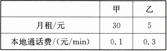 | 本地通话费/(元/min) | $0.1$ | $0.3$ |