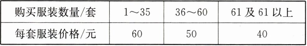 |购买服装数量/套|1~35|36~60|61 及 61 以上|