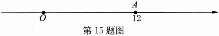 15. 如图,数轴上点$A$对应的有理数为 12,点$P$以每秒 1 个单位长度的速度从点$A$出发,点$Q$以每秒 2 个单位长度的速度从原点$O$出发,且$P$,$Q$两点同时向数轴正方向运动. 设运动时间为$t$秒.
