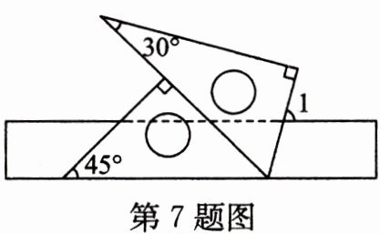 7. 将一副三角尺按如图所示的位置摆放在直尺上,则$\angle 1$的度数为