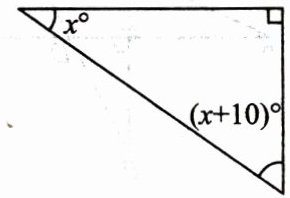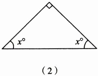 根据三角形内角和为$180^{\circ}$,在这个三角形中有一个角是$90^{\circ}$,另外两个角都为$x^{\circ}$,则: