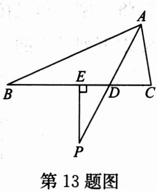 13. 如图,在$\triangle ABC$中,$AD平分\angle BAC$,$P为AD$延长线上一点,$PE\perp BC$,垂足为$E$.已知$\angle ACB = 80^{\circ}$,$\angle B = 24^{\circ}$,求$\angle P$的度数.