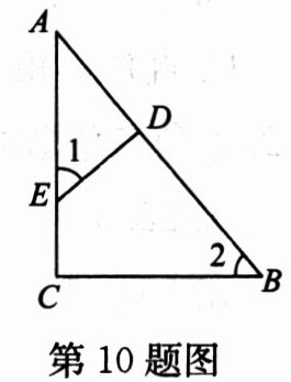 10. 如图,已知$\angle C = 90^{\circ}$,$\angle 1 = \angle 2$,则$\triangle ADE$是