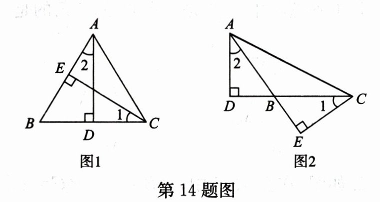 14. 如图$1$,在$\triangle ABC$中,$AD\perp BC$,$CE\perp AB$,垂足分别为$D$,$E$.