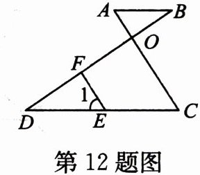 12. 如图,已知 $AB // DC$,$AC$ 和 $BD$ 相交于点 $O$,$E$ 是 $CD$ 上一点,$F$ 是 $OD$ 上一点,且 $\angle 1 = \angle A$.