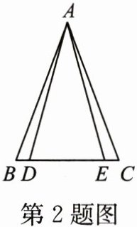 2. 如图,$△ABE≌△ACD$,若$∠B = 70^{\circ}$,$∠AEB = 75^{\circ}$,则$∠CAE = $(