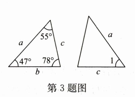 3. 如图,图中的两个三角形全等,则$∠1 = $
