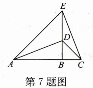 7. 如图,$△ABD≌△EBC$,$AB = 12$,$BC = 5$,且$A$,$B$,$C$三点共线,则下列结论中:①$CD⊥AE$;②$AD⊥CE$;③$ED = 8$;④$∠EAD = ∠ECD$,正确的有(