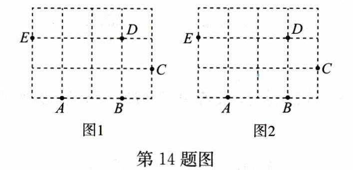 14. 如图,按下列要求分别过$A$,$B$,$C$,$D$,$E$五个点中的三个点画三角形.