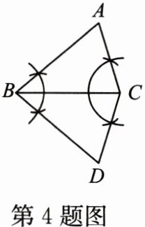 4. 如图,在用尺规作图得到$\triangle DBC \cong \triangle ABC$过程中,先作$\angle DBC = \angle ABC$,再作$\angle DCB = \angle ACB$,从而得到$\triangle DBC \cong \triangle ABC$,其中运用了三角形全等的判定方法是(