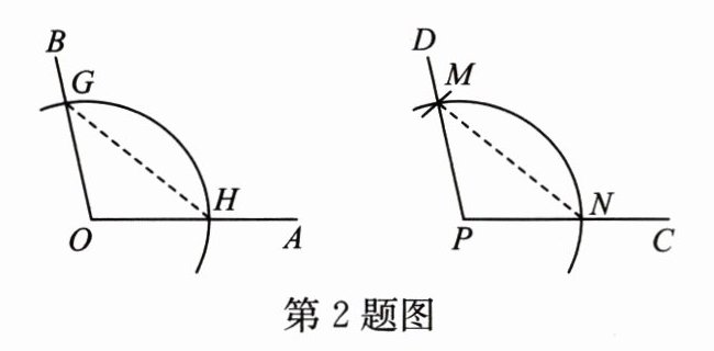 2. 如图,利用直尺和圆规作出$\angle CPD = \angle AOB$,作图依据是(