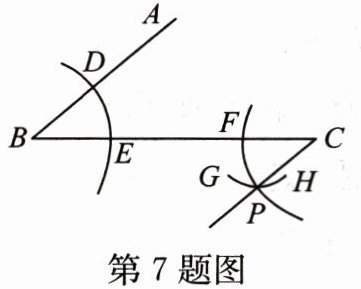 7. 如图,利用直尺和圆规作出$CP // AB$,则作图痕迹中弧$GH$是(