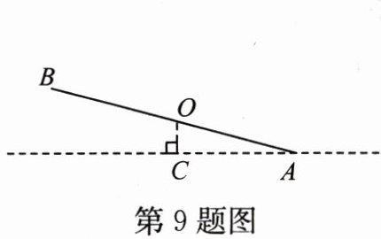 9. 如图是标准跷跷板的示意图,横板$AB的中点过支撑点O$,且绕点$O$只能上下转动。如果$\angle OCA = 90^{\circ}$,$\angle CAO = 15^{\circ}$,则小孩玩耍时,跷跷板可以转动的最大角度为(