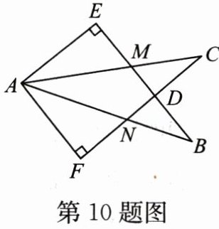 10. 如图,$\angle E= \angle F = 90^{\circ}$,$AB = AC$,$AE = AF$。求证$AM = AN$。