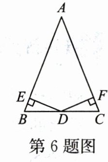 6. 如图,在$\triangle ABC$中,点$D为边BC$的中点,$DE\perp AB$,$DF\perp AC$,垂足分别为$E$,$F$,且$DE = DF$。求证$\triangle BDE\cong\triangle CDF$。