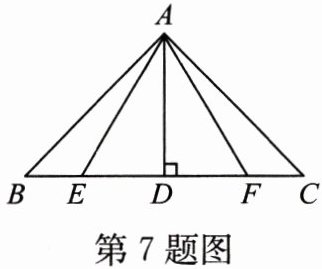 7. 如图,在$\triangle ABC$中,$AB = AC$,$AD\perp BC$,垂足为$D$,点$E$,$F在BC$上,$BE = CF$,则图中共有全等三角形(
