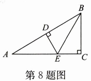 8. 如图,在$\triangle ABC$中,$\angle C = 90^{\circ}$,$DE\perp AB$,垂足为$D$,$BC = BD$,若$AC = 8\mathrm{cm}$,则$AE + DE$的值为(