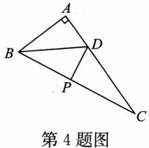 4. 如图,在$\triangle ABC$ 中,$\angle A = 90^{\circ}$,$BD$ 平分$\angle ABC$ 交 $AC$ 于点 $D$,$AD = 3$,若 $P$ 是 $BC$ 上的动点,则线段 $DP$ 的最小值是(