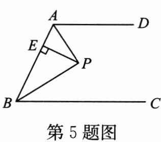 5. 如图,$AD // BC$,$\angle ABC$ 的平分线 $BP$ 与$\angle BAD$ 的平分线 $AP$ 相交于点 $P$,作 $PE \perp AB$,垂足为 $E$。若 $PE = 3$,则两平行线 $AD$ 与 $BC$ 间的距离为(