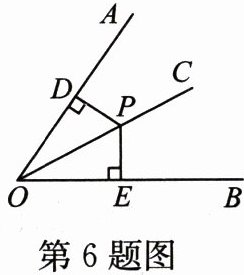 6. 如图,OC 是∠AOB 内部的一条射线,P 是射线 OC 上任意一点,PD⊥OA,PE⊥OB.下列条件:①∠AOC = ∠BOC;②PD = PE;③OD = OE;④∠DPO = ∠EPO,其中能判定 OC 是∠AOB 的平分线的有