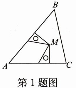 1. 两个完全一样的三角尺按如图所示的方式摆放,三角尺的一条直角边分别与△ABC 的边 AB,AC 重合,它们的顶点重合于点 M,则点 M 一定在(