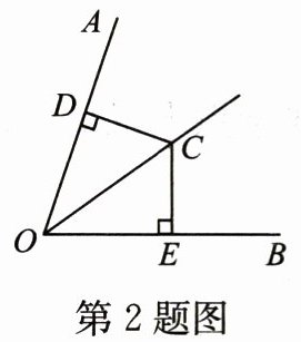2. 如图,∠AOB = 70°,点 C 是∠AOB 内一点,CD⊥OA,CE⊥OB,垂足分别为 D,E,且 CD = CE,则∠DOC 的度数是(