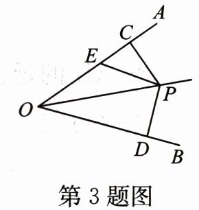 3. 如图,点 P 是∠AOB 内一点,PC⊥OA,PD⊥OB,垂足分别为 C,D,且 PC = PD,点 E 在 OA 上,∠AOB = 50°,∠OPE = 30°,则∠PEC 的度数是(
