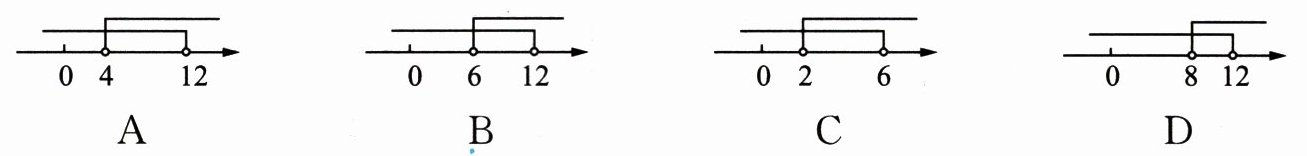 4. 已知三角形的三边长分别为 4,8,$ a $,下列在数轴上表示该三角形的第三边边长 $ a $ 的取值范围正确的是(