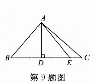 9. 如图,在 Rt△ABC 中,∠BAC = 90°,∠B = 50°,AD⊥BC,垂足为 D,△ABD 与△AED 关于 AD 所在的直线对称,点 B 的对称点是点 E,则∠CAE =