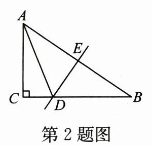 2. 如图,在 $ Rt\triangle ABC $ 中,$ \angle ACB = 90^{\circ} $,$ DE $ 垂直平分 $ AB $ 交 $ BC $ 于点 $ D $,若 $ \triangle ACD $ 的周长为 $ 50\,cm $,则 $ AC + BC = $(