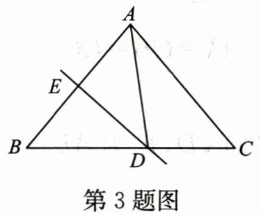 3. 如图,在 $\triangle ABC$ 中,$AB = AC$,边 $AB$ 的垂直平分线交 $BC$ 于点 $D$,交 $AB$ 于点 $E$。若 $\angle B = 50^{\circ}$,则 $\angle CAD$ 的度数为(