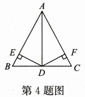 4. 如图,在 $\triangle ABC$ 中,$AB = AC$,$AD$ 平分 $\angle BAC$,交 $BC$ 于点 $D$,$DE \perp AB$,$DF \perp AC$,垂足分别为 $E$,$F$,则下列结论中错误的是(