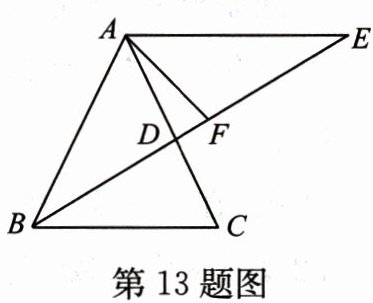 13. 如图,在 $\triangle ABC$ 中,$AB = AC$,$\angle ABC$ 的平分线交 $AC$ 于点 $D$,过点 $A$ 作 $AE // BC$,交 $BD$ 的延长线于点 $E$。
