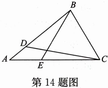 14. 如图,在 $\triangle ABC$ 中,$\angle A = 40^{\circ}$,$D$,$E$ 两点分别在边 $AB$,$AC$ 上,$BD = BC = CE$,连接 $CD$,$BE$。