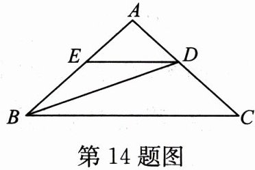 14. 如图,$BD是\triangle ABC$的角平分线,$DE// BC$,交$AB于点E$.