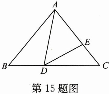 15. 如图,在$\triangle ABC$中,$AB = AC$,$\angle BAC = 80^{\circ}$,点$D在边BC$上运动(点$D不与点B$,$C$重合),连接$AD$,作$\angle ADE = 50^{\circ}$,$DE交边AC于点E$.