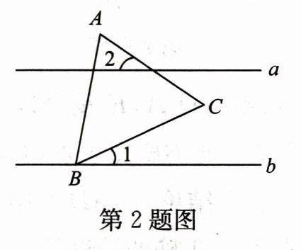 2. 如图,已知 a//b,等边三角形 ABC 的顶点 B 在直线 b 上,∠1 = 25°,则∠2 的度数为(